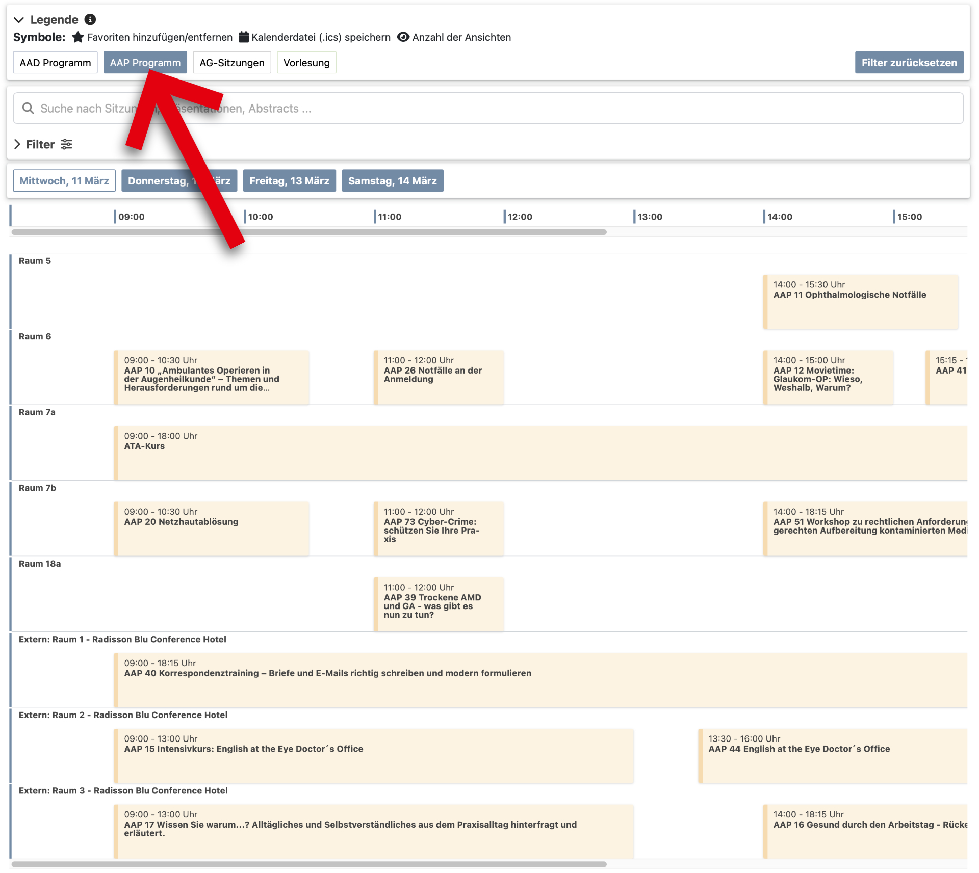 Um alle Kurse, die 2026 für AAP buchbar sind, anzuschauen, wählen Sie im Filter auf der Seite Programm 2026 – interaktiv einfach bei „AAP-Programm“ aus.