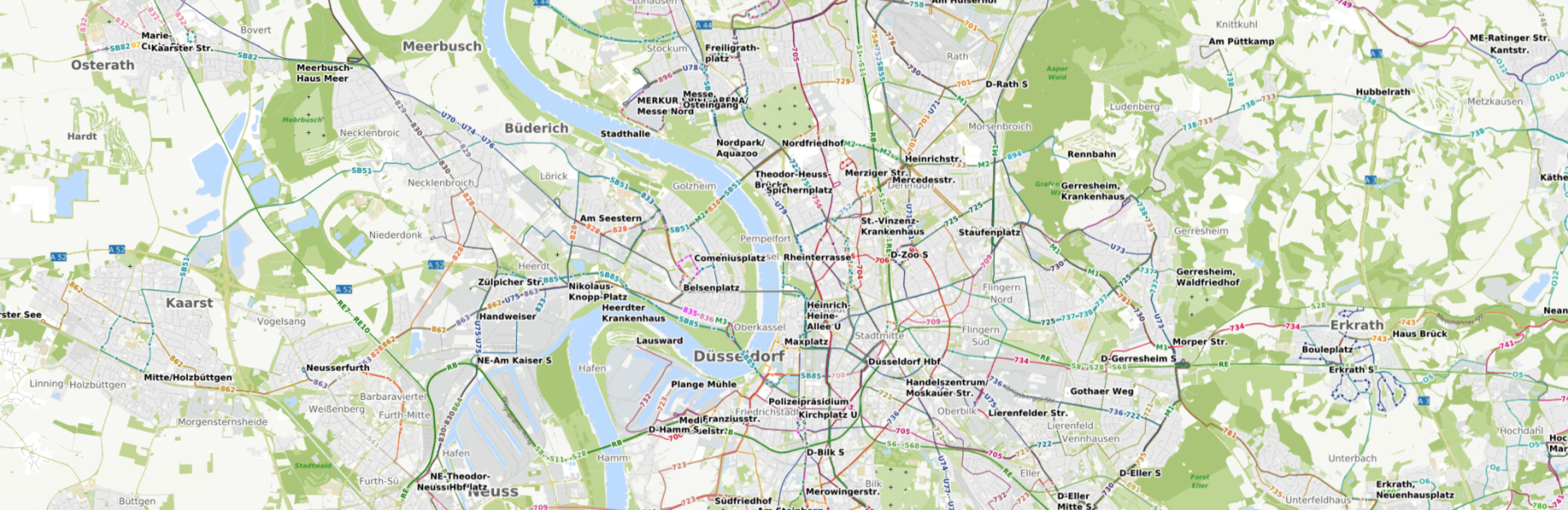 Die Buslinie 722 bringt Sie in knapp 30 Minuten vom Düsseldorfer Hauptbahnhof zum Kongresszentrum.