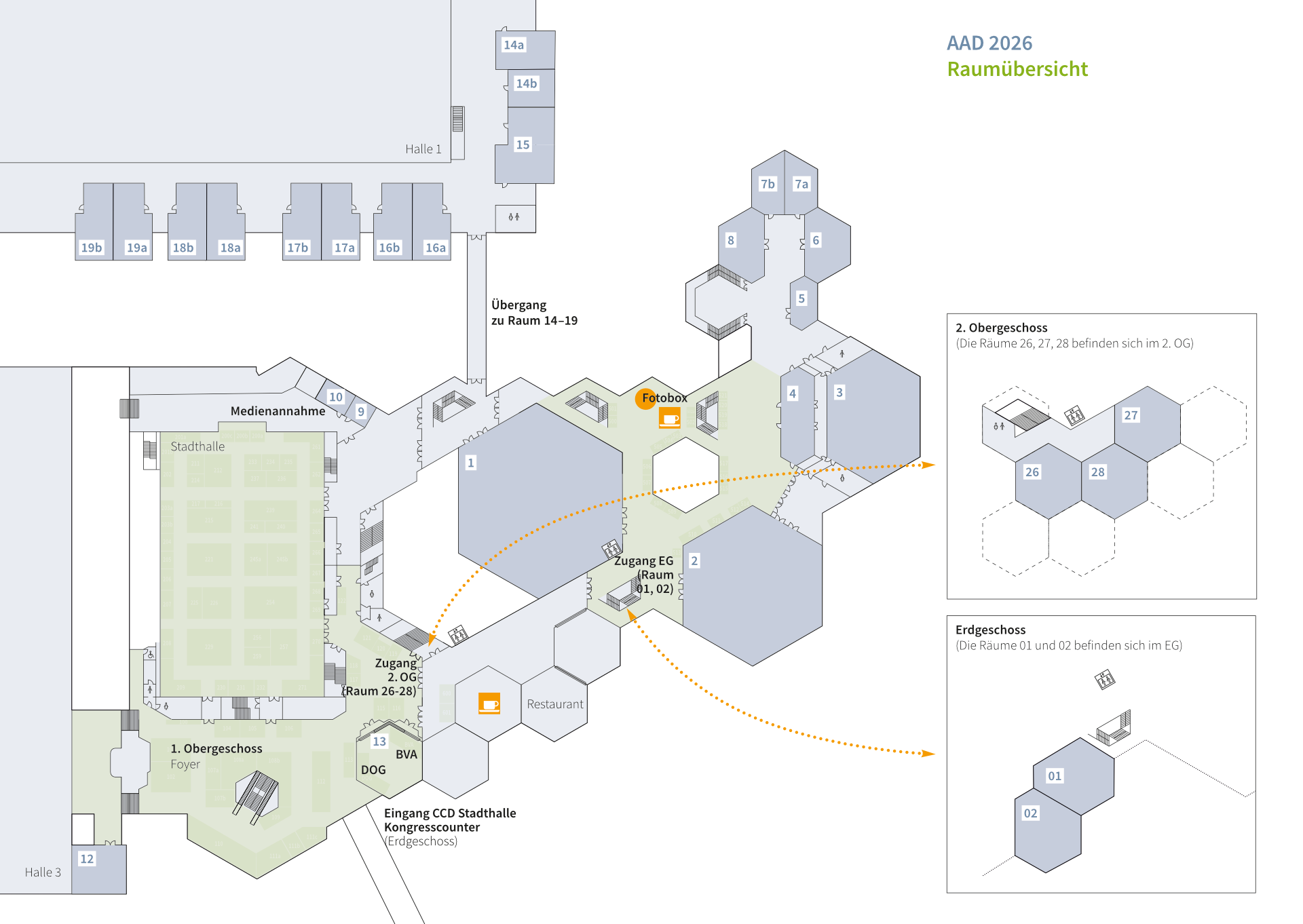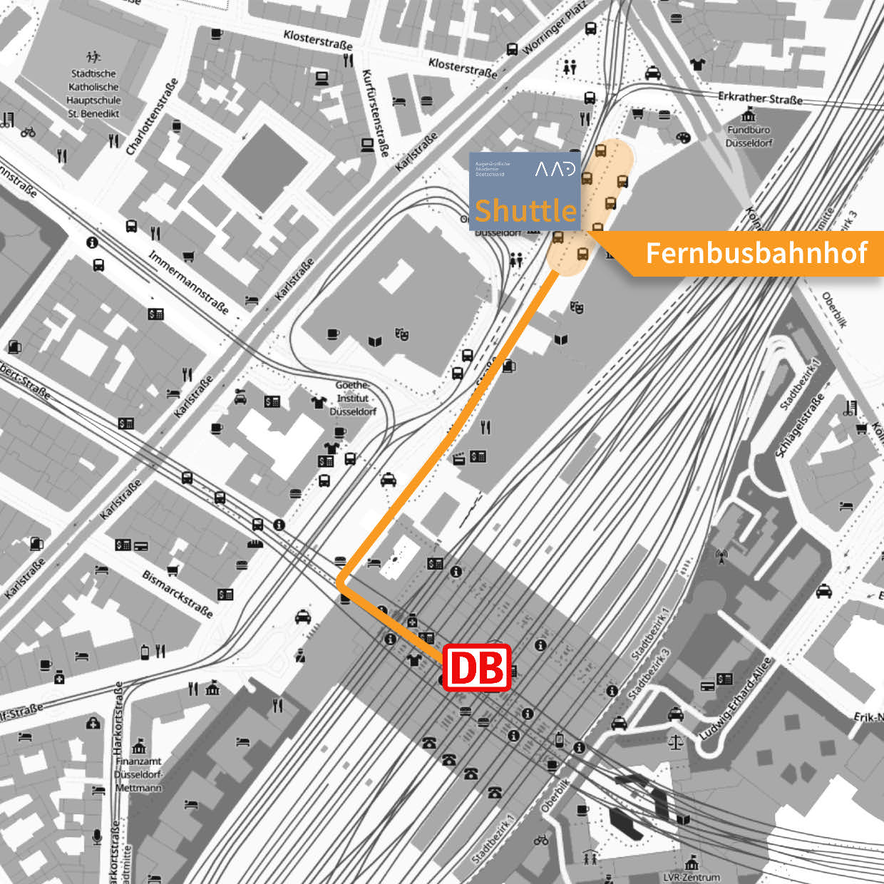 Zwischen dem Hauptbahnhof Düsseldorf und dem CCD Düsseldorf pendeln an allen Kongresstagen Shuttlebusse, die von den AAD-Teilnehmenden kostenlos genutzt werden können.